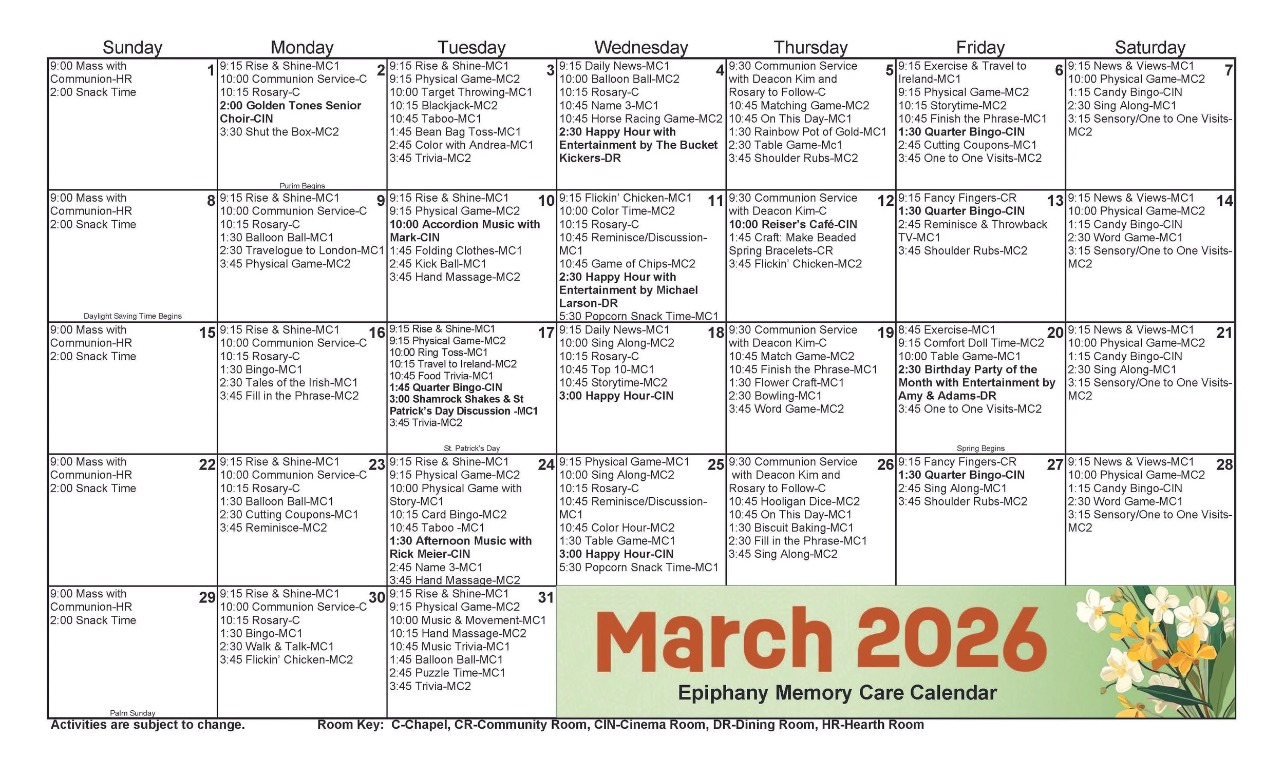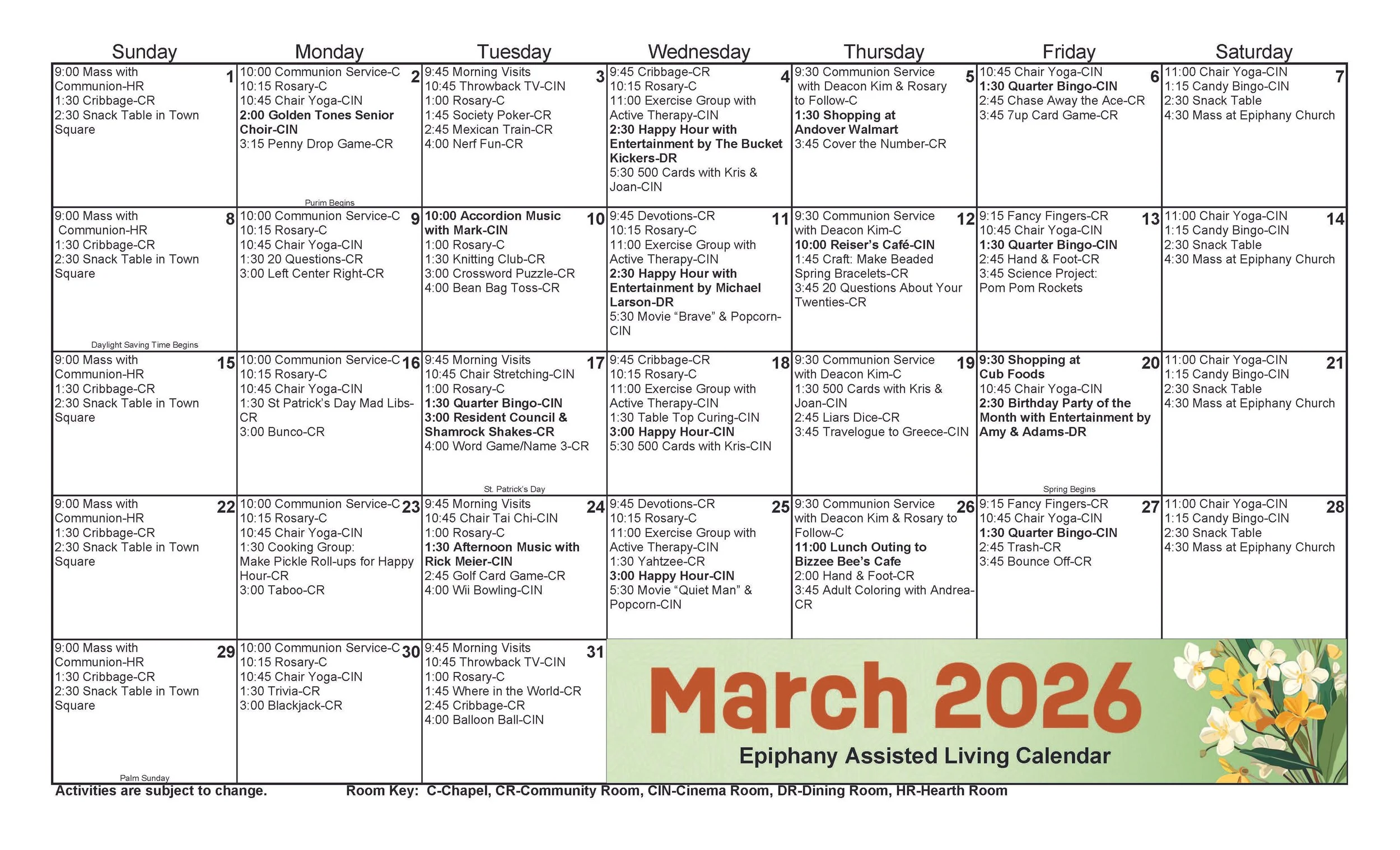 Epiphany Assisted Living Calendar
